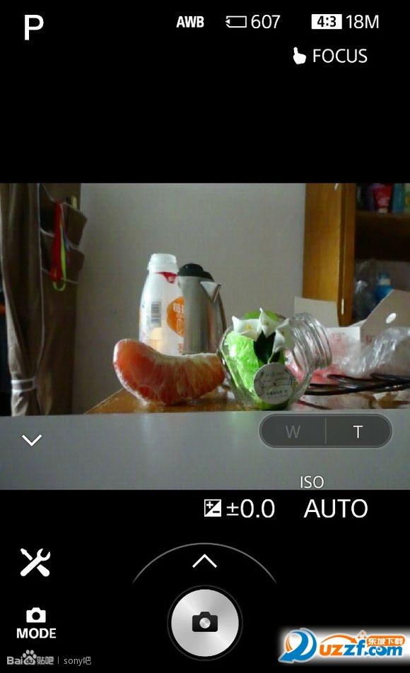 连接成功后,我们就可以在手机里看到镜头中的景象。由于是通过 无线方式进行连接的,因此镜头与移动设备之间还是有一定的距离限制。取景器会根据镜头的移动在全屏与竖屏之间进行切换,位于取景器右侧的“W / T”是变焦调节按钮,我们可以快捷调节镜头的长短,从而获得最佳的拍照视野。在确定拍摄物体后,单击屏幕对焦,按下拍摄按钮即可完成照片的拍摄。在没有 SD 存储的情况下,所拍摄的照片会自动复制到手机存储里。