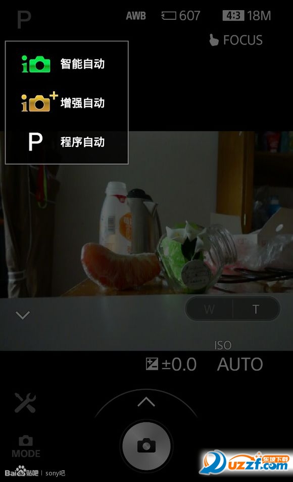 应用提供3种智能拍摄模式,分别是智能自动,增强自动与程序自动,点击左上角的「P」字按钮即可切换。在程序自动模式下,点击拍摄图标右上方的 “ISO”按钮可以手动调节相机的ISO。而切换为智能自动或增强自动后,相机会根据不同的环境自动选择理想的拍摄模式、曝光、闪光灯、白平衡等,无需 我们手动干预。