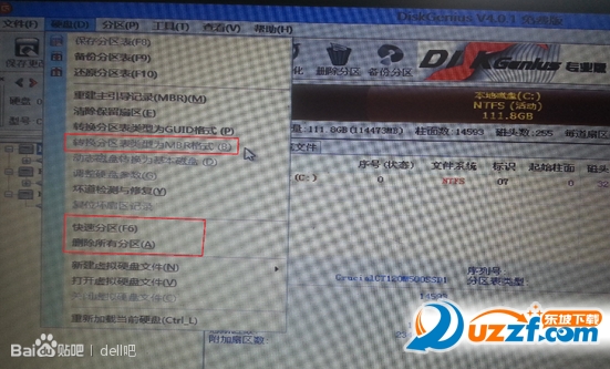 4. 选择左上角硬盘选择删除所有分区并且保存更改,然后再选择硬盘选择转换成MBR格式转换完之后再次点击保存更改如图