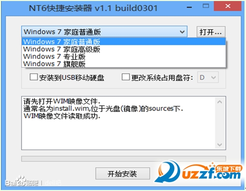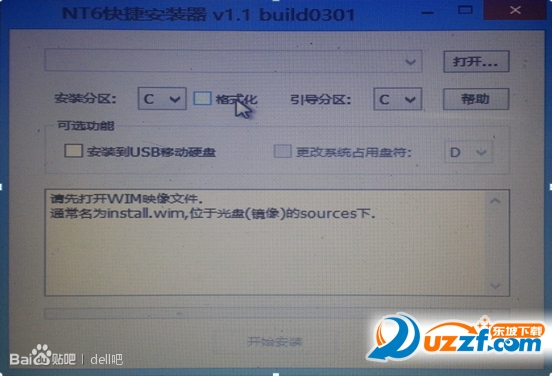 7. 选择打开按钮选择到系统install.Wim,在系统的sources文件夹下