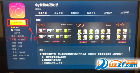 进入“小y智能电视助手”之后,点击下图红框内的“免费下载”按钮,然后就会自动下载安装了