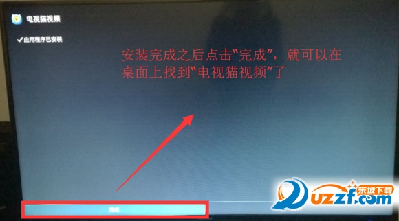 安装完成之后,点击下图的“完成”按钮就可以在界面上面找到“电视猫视频”的图标了