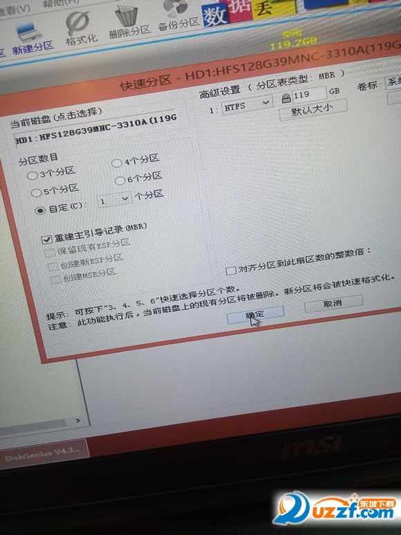 这个图就是把重建主引导记录前面对勾去掉了,还有右边的主分区对勾去掉,然后确定,为什么要去掉这个,不去掉不能正常启动,去掉之后会固态硬盘启动了。