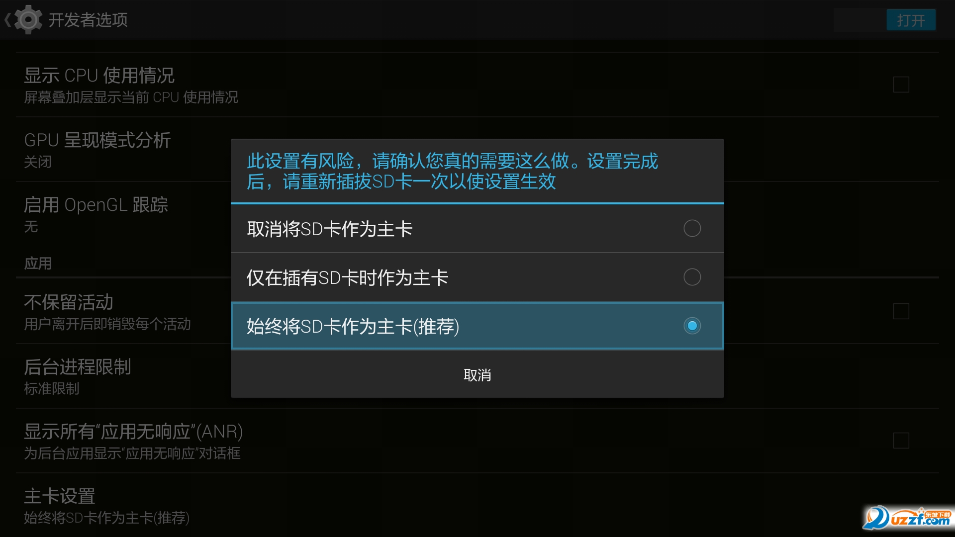 6、选择“始终将SD卡设置为主卡(推荐)”,并按照要求,重新插拔一次TF卡。