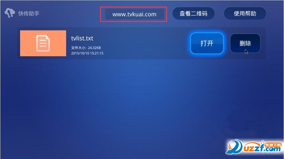 首先下载安装“快传助手“,打开浏览器,最好不要用360浏览器,限制比较多。输入:www. tvkuai. com,将已经保存好的节目源上传!