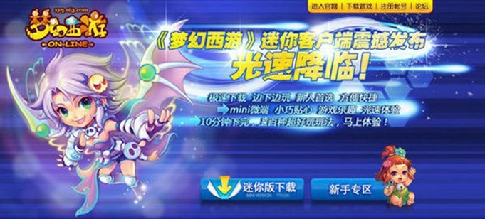 随着微时代的到来,越来越多的软件趋向迷你化。对于很多梦幻迷们来说,由于越来越多新内容的添加,客户端也随之越来越大,下载需要的时间也越来越多,哎,真是伤脑筋啊!嘿嘿,现在大家不用为这个问题发愁了,最近《梦幻西游》迷你客户端正式亮相了,它的大小仅有164M!玩家能在极短的时间内下载并体验,可谓是梦幻迷们的福音啊!