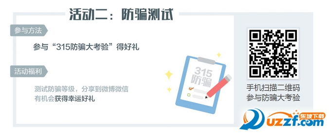 马上又要到今年的315了,你是否还在被各种各样的骗术困扰着,360手机卫士推出了全新的315防骗公益活动,用户朋友通过参加活动不仅可以了解最新的防骗术知识,还可以获取奖励。