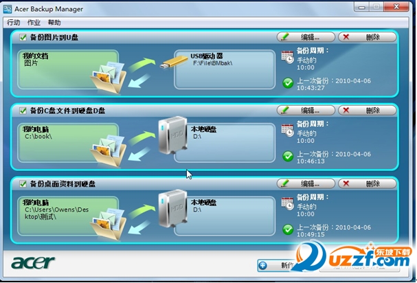 1,手动:直接点击保存即可,手动备份是通过按Acer Backup Manager按钮即可以开始备份,其中的"一键备份"的勾时无法去掉的(每周,每天,每月,的"一键备份勾是可以去掉的")