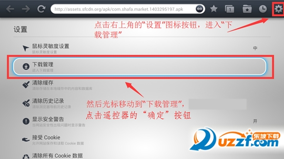 3、下载完成后,点击右上角的“设置”按钮,选择“下载管理”;
