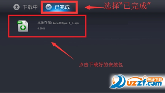 5、在“已完成”中就可以找到刚刚下载的“电视猫视频”安装包啦,点击即可完成安装;