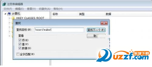 39、① 查找注册表文件。使用自己制作的封装系统进行安装,登录系统以后,运行C:Widows目录下的regedit.exe打开注册表编辑器,点击“编辑”,再点击“查找”,在“查找”对话框里输入“Users<已经删除的用户名>”(如UsersMaker),点击“查找下一个”开始查找。