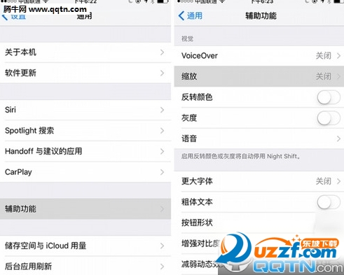 首先,打开‘设置’-‘通用’-‘辅助功能’-‘缩放’界面。