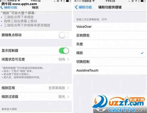 开启‘显示控制器’并在下方选择‘全屏幕缩放’和‘弱光’,之后退回上一级‘辅助功能’页面,滑动到最底部选择‘辅助功能快捷键’,选择‘缩放’选项。