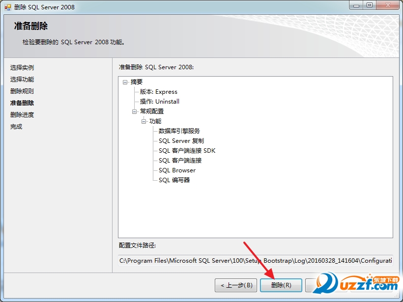 准备卸载界面:点击“删除”按钮即可开始卸载