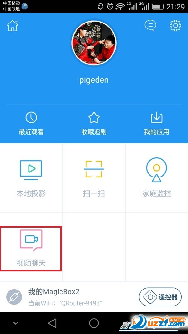 步骤2:打开天猫魔盒端,”我的应用“——“视频聊天”应用;