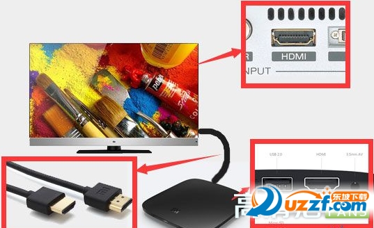 1.如果你的电视有HDMI接口,那么用小米盒子mini版中自带的HDMI线,连接小米盒子mini版和电视。