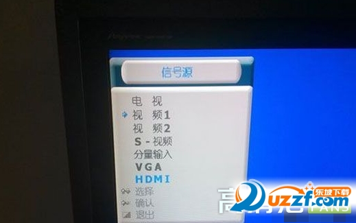 3、将小米盒子mini版与电视连接完毕以后,打开电视,将电视调到信号源界面。如果你是用HDMI线连接的,就将电视上的信号源中选定HDMI。如果你用AV复合视频线连接,那么就请尝试选择视频1或者视频2。电视方面的设置就完事了。
