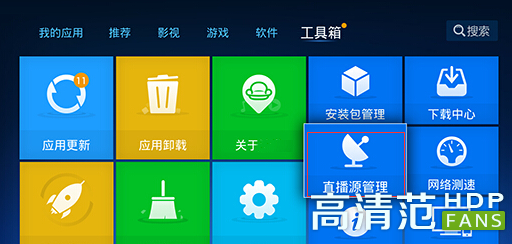 1、打开沙发管家,选择工具箱,选择直播源管理。