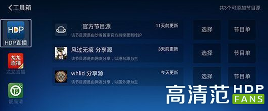 2、最右侧的节目单 这里看到沙发官方以及网友们提供的源里面有哪些节目。