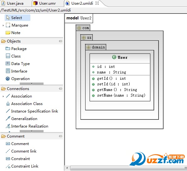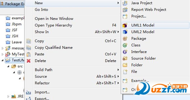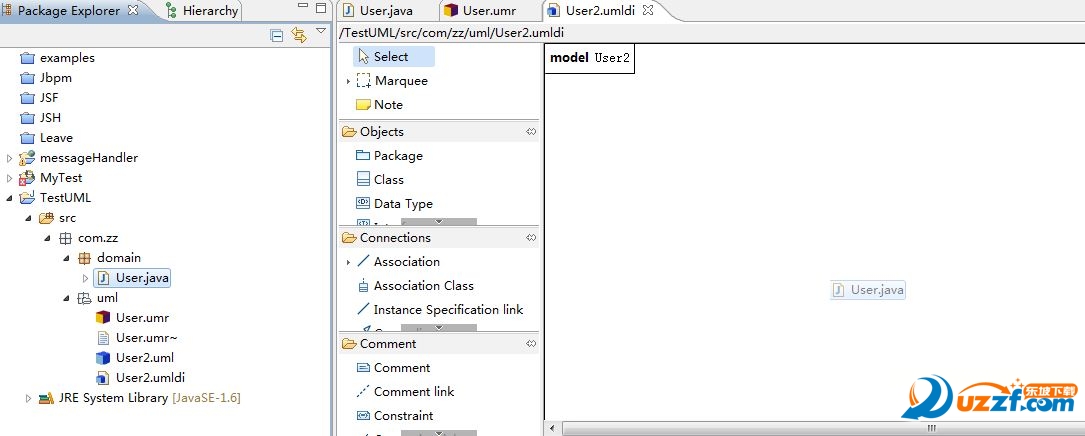 2.打开MyEclipse UML 透视图,新建Uml1,如下