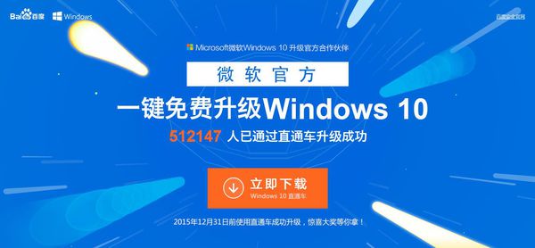 但是,可以用百度的“win10直通车”软件来完成电脑系统的自助升级操作,升级方式和360类似的,直通车下载网址为:http://anquan.baidu.com/zt/win10/?key=1