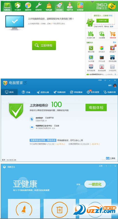 百度卫士 360安全卫士 qq电脑管可以说是现在免费的电脑安全软件中都是很多的人在使用的,你想知道有多少的人都是在使用哪一款的,同时又是哪一款软件是最好的吗?看看下面的比较吧!