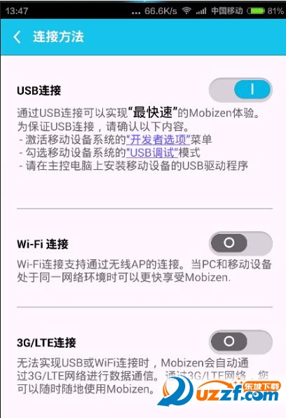 链接方法还有wifi链接和3G网络连接,为了保证游戏画面流畅,使用USB链接更稳定,使用时关闭其它链接方式;