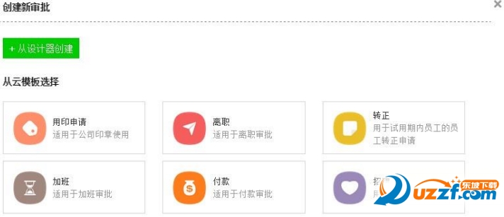 可从云模板选择设置,也可通过设计器自行设计,让审批更贴合企业工作。