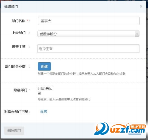 • 默认勾选“创建部门企业群”,如果有新人加入部门会自动加入该群;
