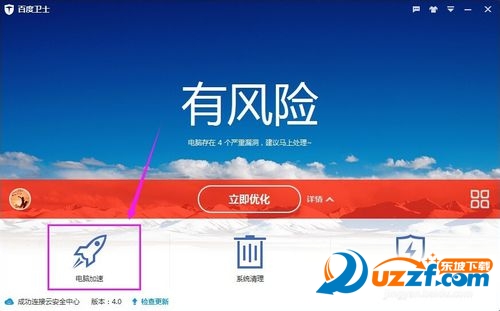 然后我们打开百度卫士,点击主界面下方的电脑加速按钮。