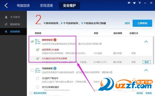 选择“安全维护”之后,我们再点击左侧“系统修复”按钮。