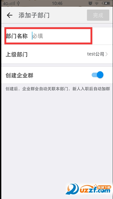 在此,先【添加子部门】,设置好组织架构,填写子部门的名称