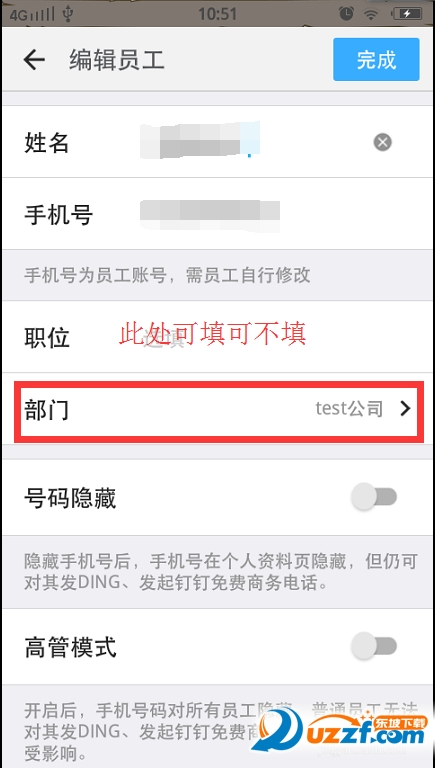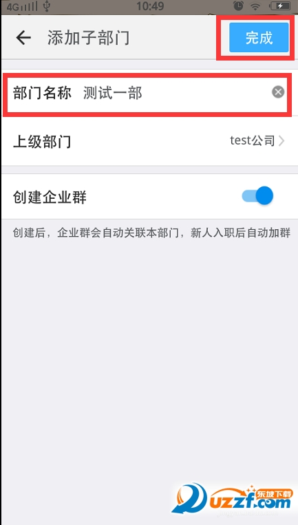 在此添加了测试一部,同样的方法可以多添加几个部门