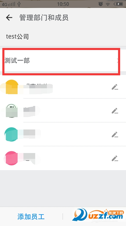 进入到管理部门和成员界面,下面有【添加员工】【添加子部门】