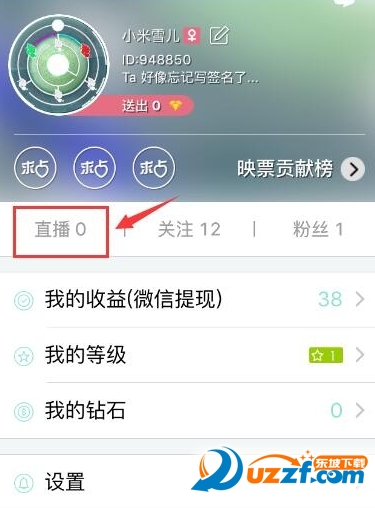 2、进入个人中心后,点击直播