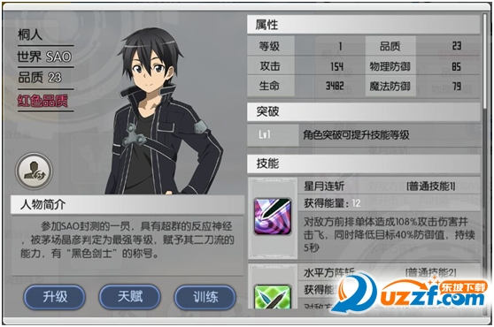 桐人这么厉害,当然在游戏内也是神级的英雄哦~品质即为红色,给大家科普一下,红色品质在《刀剑神域—黑衣剑士》中是最高品质哦~