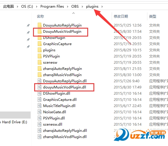 注意!请将目录下的所有文件和目录都原原本本的复制到OBS目录下对应的Plugins目录里面,最终Plugins目录里面是这样的: