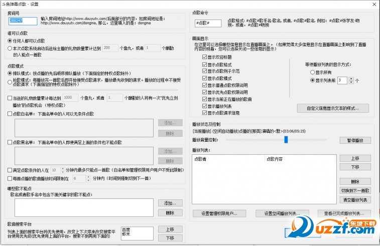 这个点歌系统充分调查和了解了用户的需求,所以功能上比较全面和强大的,所有的这些功能都反映在上面的设置界面上,要充分的发挥插件的强大功能,必须要先熟练的了解和使用设置窗口上面的这些功能。