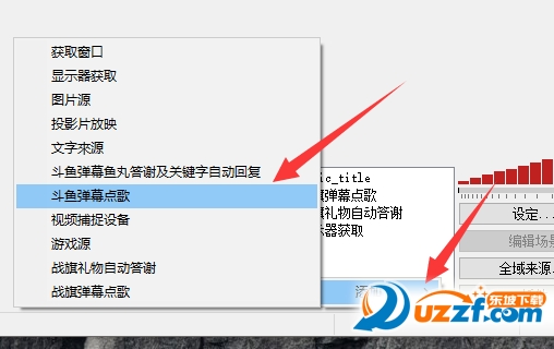 按照上面的安装说明安装好插件后,启动OBS, 然后在OBS主界面的“来源”列表窗口里面点鼠标的右键,然后点击弹出来的“添加”,再在里面点击“斗鱼弹幕点歌”来添加这个特殊的源。
