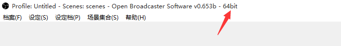 如何识别您运行的OBS是什么位的版本,可以简单的通过OBS主窗口的标题来进行区别:64位的版本,在标题名字后面有64bit 字样的:
