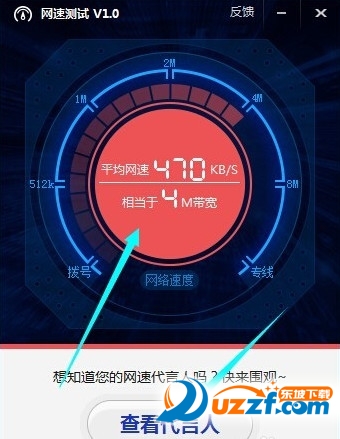 6.测试完成之后会在窗口中显示人铁测试信息。如需要查看网速代言人点击查看代言人。