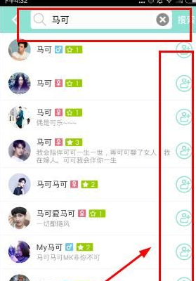 3、点击右上角的搜索图标,输入好友的昵称就可以关注好