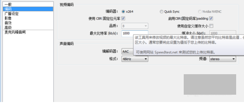 直播的清晰度很大一部分是跟码率(沾边的)为什么我这里强调一个合适的码率呢,码率越高,是越吃你(主播)的网速和电脑配置的,一般建议1500-2000左右,就基本足够了。
