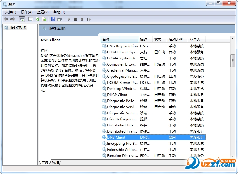 找到 在其中找到“DNS Client” 将其停用并改为“禁用”具体的操作就是