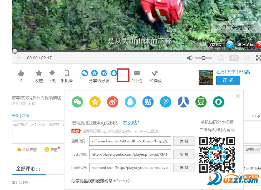 然后直接复制里面的video(或embed)的代码到自己需要的文章中就可以了。