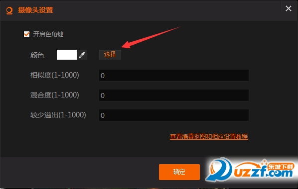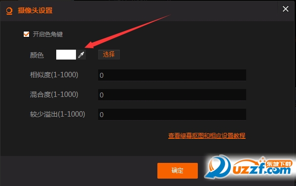 也可以点击图示中颜色选择旁边的色彩抓取笔,鼠标将变成一个色彩抓取笔,可直接截取摄像头内绿幕的颜色。