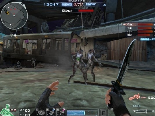 10关在4号口有5只白胖子,1,2,3有一堆小杂兵,最后在4号口出一个蓝色小boss打黄金的推荐站在1号拐角。打水晶的,推荐站在车厢口,用手雷先轰掉白胖子一半的血,然后边退边打。全部清掉后小boss就出来了,这时爆走已经准备好了,可以让队友先打几枪,起引怪效果,然后开暴走追着刀它就行,或者靠技术和他单批