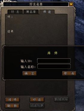 1、在好友名单增加师徒分页,显示当前自己所拥有的师徒关系