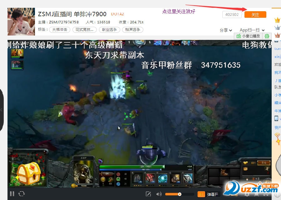 4、看吧关注主播就在右上角,关注后主播每天开播上线都会直接提醒你哦