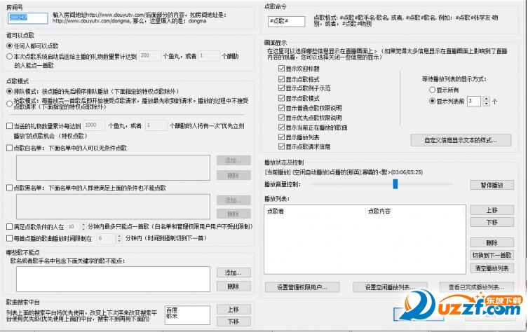 可以设置点歌的权限,即谁可以点歌,包括3种方式:任何人、送给房间主播的礼物到指定的数量、白名单或点歌管理员列表中的指定的人;